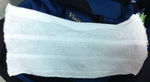 Mesh underwear.  This has got to be the next trend on the street and I will have been on the front cusp of stunning fashion!!  She hands me a square of mesh – alright, it’s a rectangle – but it doesn’t look like more than a single sheet.  She says that they are underwear.  I am dubious to say the least.  And she hands me a pad that could absorb the Potomac – these two things are supposed to go together.  I believe that this is quite funny.  Enough that I take the time to lay out the little rectangle of mesh to take a picture of it – had to be done.  You try “putting these on.” :